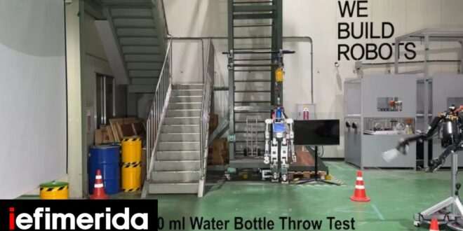 Ανθρωποειδές ρομπότ που αναπτύχθηκε από το Ινστιτούτο Έρευνας Ατομικής Ενέργειας της Κορέας κατάφερε να ρίξει με ακρίβεια μπουκάλι νερού σε βαρέλι από απόσταση.